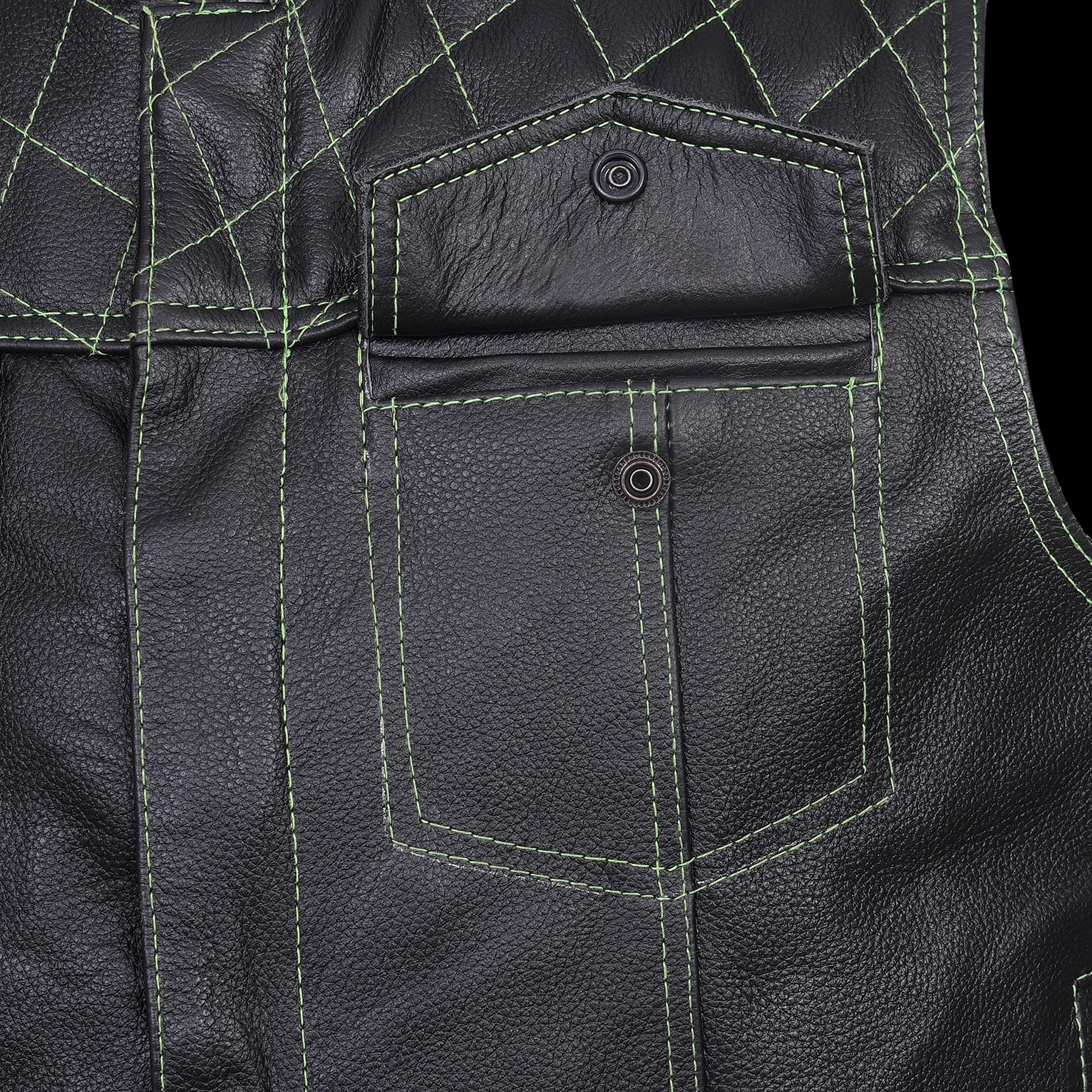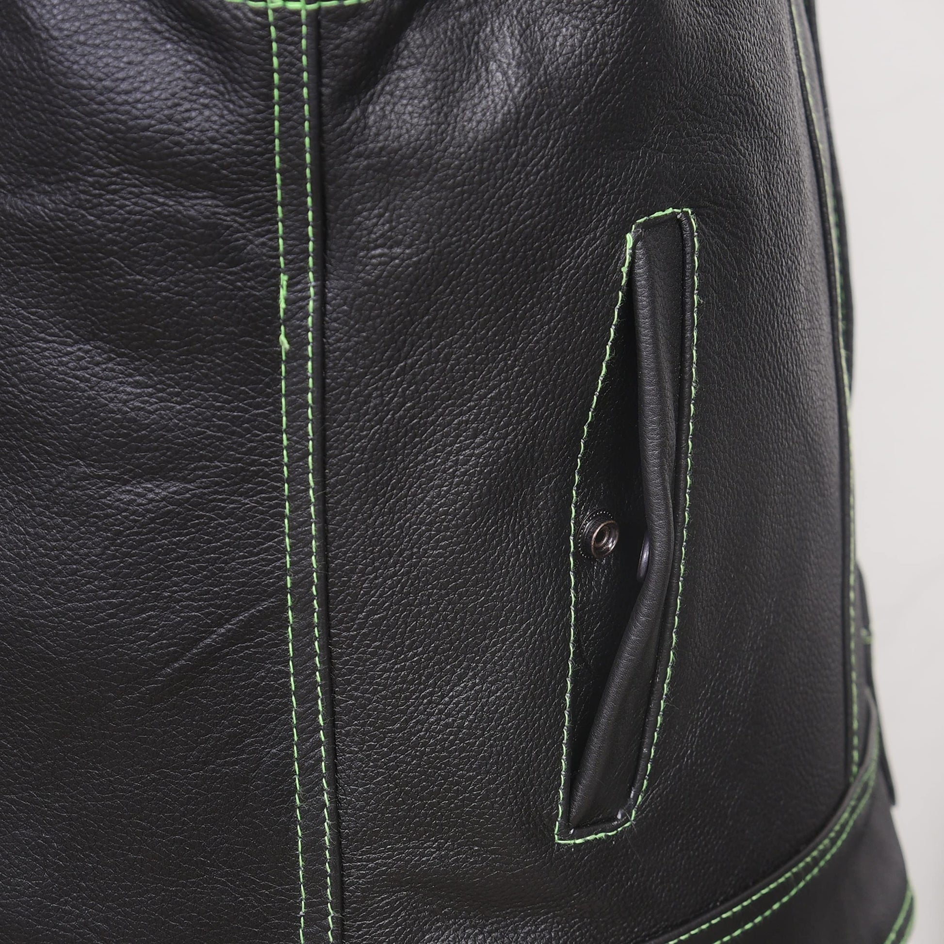 - Our leather motorcycle vest have multiple pockets and one concealed Pockets. Easy to keep your firearm carry, bullets, and other accessories safe and sound. Hidden Gun Pockets for law enforcement and Special forces.